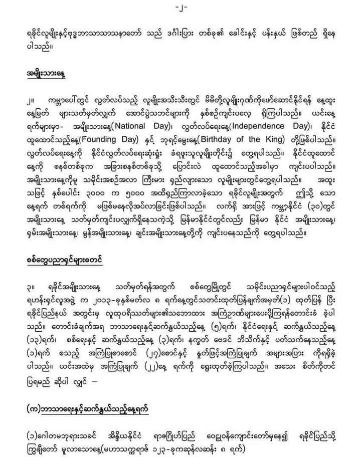 ( ခ ) နိုင်ငံရေးနှင့်ဆက်နွှယ်သည့်နေ့ရက်
